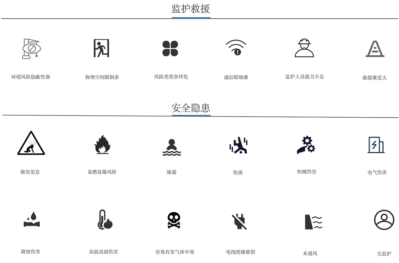目前除了安裝必要的通風(fēng)設(shè)施外,主要是靠人工巡檢作為作業(yè)安全的預(yù)防手段,效率比較低,而且存在不能及時發(fā)現(xiàn)事故的可能性。市場上的相關(guān)安全監(jiān)測產(chǎn)品,基本都是在固定位置、用攝像頭和輔助設(shè)備組成的系統(tǒng),存在造價高、系統(tǒng)復(fù)雜、不合適實(shí)際工作場景等問題。